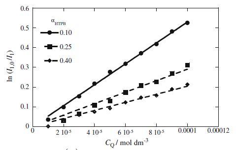 图4是ln I1的曲线图;0 I1与CQ/mol dm−3.对于HTPB+Mega-10混合体系,在不同α
