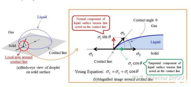 分别为气液、气固和液固界面张力。在X方向的力平衡方程,玻璃本身是亲水性的(当然如果表面做憎水处理),因此