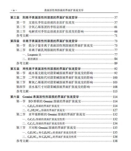 本书以国家科技重大专项的科研成果为基础,以表面活性剂溶液的界面扩张流变学研究为核心,全面介绍界面扩张流变学的概念、理论基础、方法、仪器和数据处理,系统分析模量、相角、弹性、黏性等界面流变参数的时间、频率和浓度依赖性与界面膜性质的关系,探讨界面弛豫过程的特征参数;分类描述了阴离子表面活性剂、阳离子表面活性剂、非离子表面活性剂、两性离子表面活性剂和Gemini表面活性剂在空气-水和油-水界面的扩张流变性质;重点阐释了通过界面扩张流变学研究手段获得流体界面吸附分子相互作用及微观行为的方式。