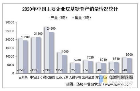 2020年中国主要企业烷基糖苷产销量情况统计