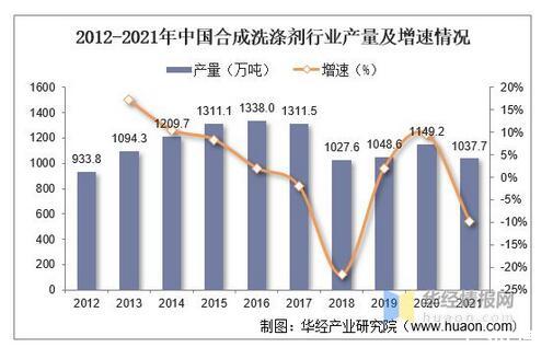 2012-2021年中国合成洗涤剂行业产量及增速情况