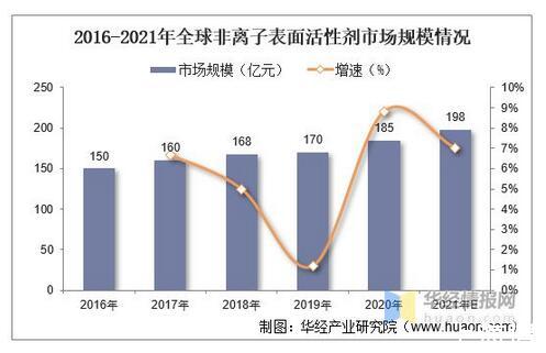 2016-2021年全球非离子表面活性剂市场规模情况