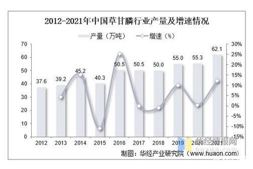 2012-2021年中国草甘膦行业产量及增速情况