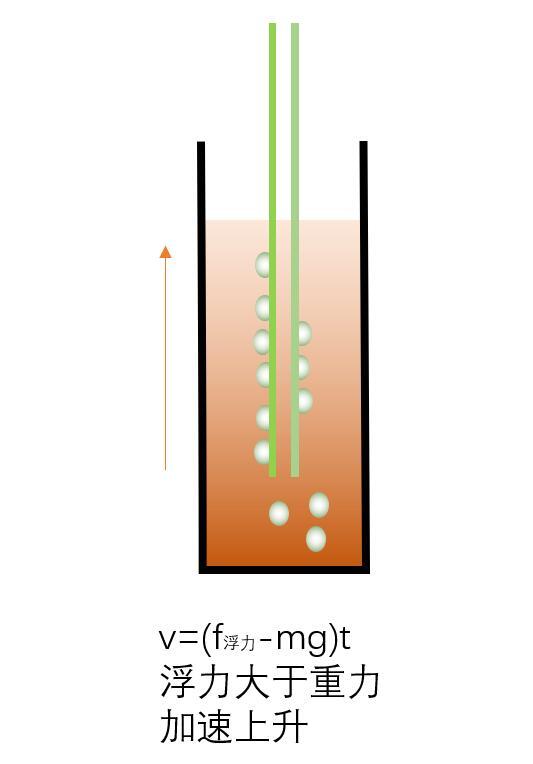 第一阶段:气泡的浮力加上吸管的浮力大于吸管的重力,吸管加速上升阶段。如下图所示