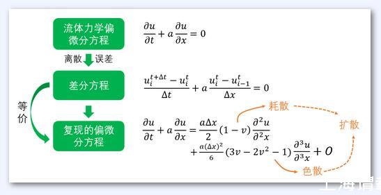 而数值粘性则完全是从微分方程离散到差分方程的过程中产生的误差。从数学推导而言,相比于原始的微分方程,从差分方程导出的修正方程中有多余的项。其中二阶项的系数对应常规N-S方程中二阶项的系数,类似于方程中的物理粘性,因此被称为数值粘性。