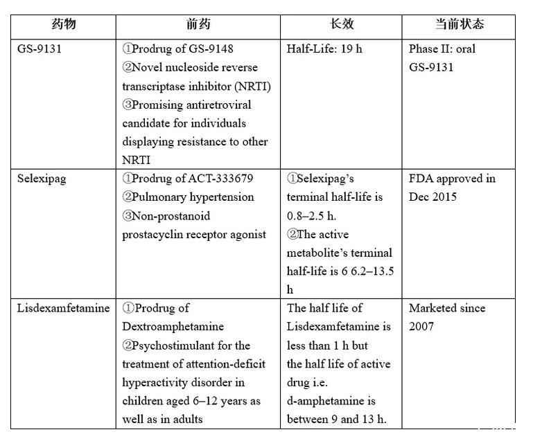表1.FDA批准的长效前药