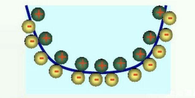 界面的同一侧带有相同符号的剩余电荷,由于同性电荷之间的排斥作用都力图使界面扩大,两作用力刚好相互抵销。