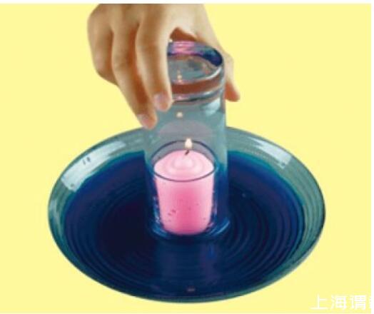 解密时刻:当蜡烛熄灭时,玻璃杯中的水会逐渐上升,上升到一定程度后,停止。因为蜡烛燃烧,消耗了玻璃杯中的氧气,减少的这部分氧气被水填充。