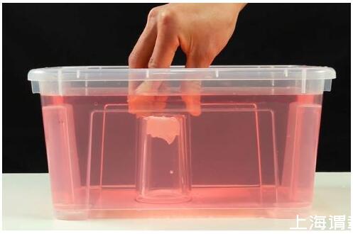 3.将一次性杯子竖直放入水盆中,观察现象。(杯子中的纸并没有被打湿)