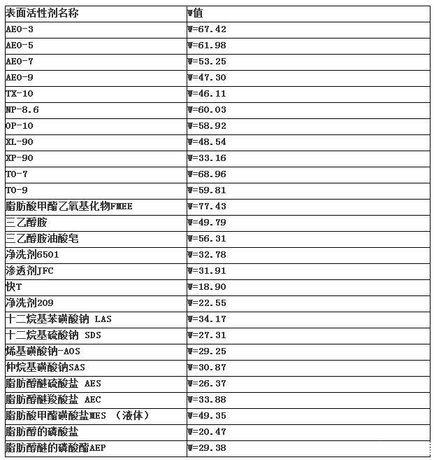 表面活性剂净洗性能一览表