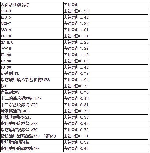 各种表面活性剂除油性能对比