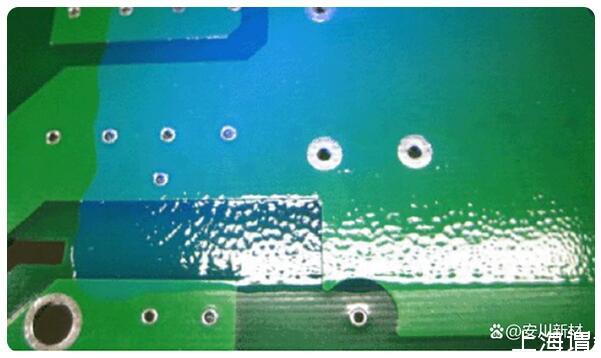 三防漆喷涂后,一般三防漆在PCB板自流平,有些自动化的喷涂工艺流平是通过传送带的速度来控制放置时间,稀释剂挥发快,粘度高,导致未流平的区域流不平,出现表面凹凸现象,也就是桔纹现象。