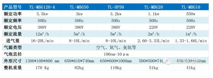 同体积气体形成的气泡比表面积大,传质效率高。气泡的体积和表面积的关系可以通过公式表示。气泡的体积公式为V=4π/3r3,气泡的表面积公式为A=4πr2,两公式合并可得A=3V/r,即V总=n·A=3V总/r。也就是说,在总体积不变(V不变)的情况下,气泡总的表面积与单个气泡的直径成反比。根据公式,10微米的气泡与1毫米的气泡相比较,在一定体积下前者的比表面积理论上是后者的100倍。空气和水的接触面积就增加了100倍,各种反应速度也增加了100倍。