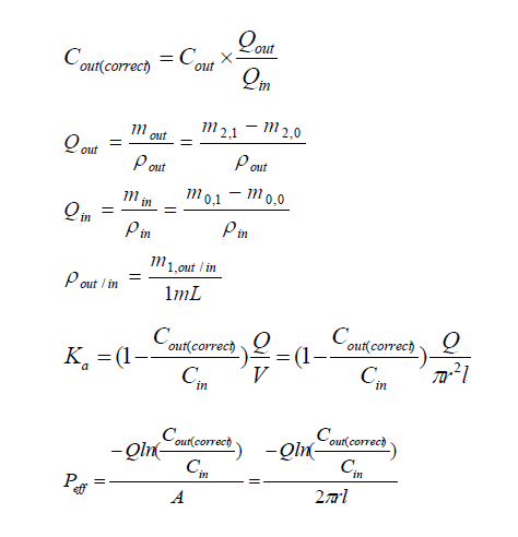 对于易于吸收的药物,即Peff>0.2×10−4cm/min,灌流时溶液密度的变化对测量结果影响不大,可以默认ρin=ρout=1 g/mL,即校正浓度Cout(Correct)=Cout×mout/min。