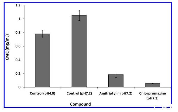 在大多数制药公司的PLD筛选策略中,下一级筛选分析是基于细胞的生物分析,在细胞内使用荧光脂质或亲脂性染料。22-25最近报道了一种基于96孔的基因表达分析26;然而,该测定已被证明不太敏感。22直到最近,还没有基于非细胞的体外筛选测定可用。已经报道了一种高通量langmuir-balance方法,将用测试化合物处理后临界胶束浓度(CMC)的变化与在人类、动物和细胞中观察到的PLD联系起来。27这种方法大大提高了预测质量与计算模型相比,与细胞分析和动物模型相比,增加了吞吐量;然而,这种方法需要使用专门的设备,即八通道表面张力计(Delta 8,Kibron Inc.,Helsinki,Finland),这在大多数实验室中并不容易获得。