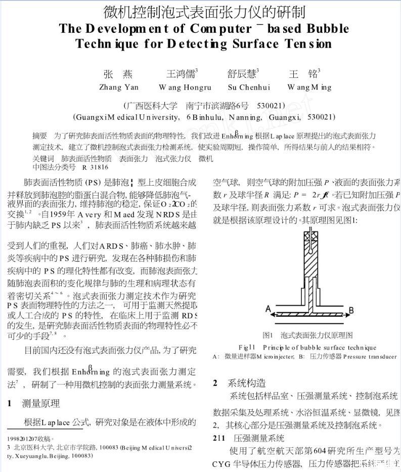 为了研究肺表面活性物质表面的物理特性,XVDEVIOS官方下载免费版改进Enhorning根据Laplace原理提出的泡式表面张力测定技术,建立了微机控制泡式表面张力检测系统,使实验周期短,操作简单,所得结果与前人的结果相符。
