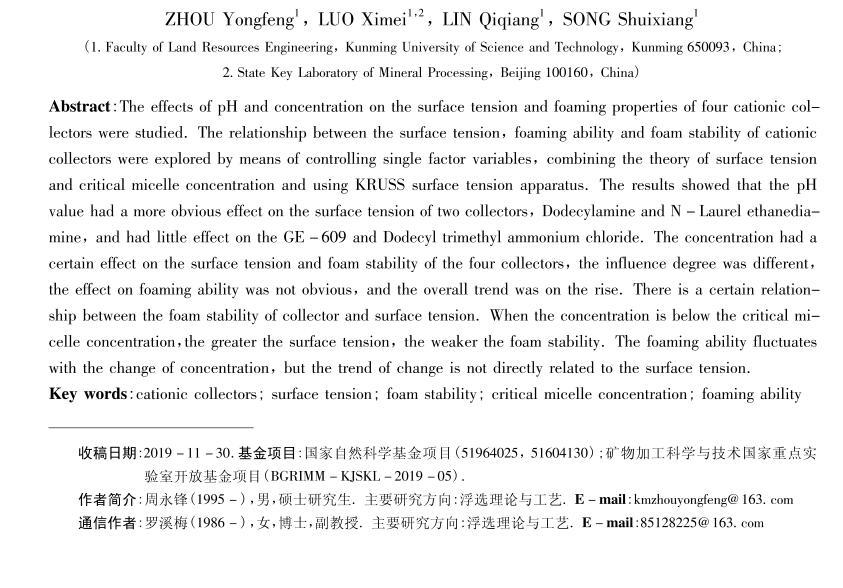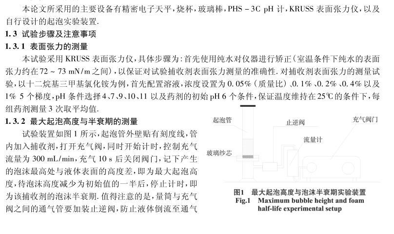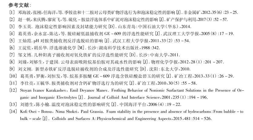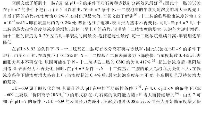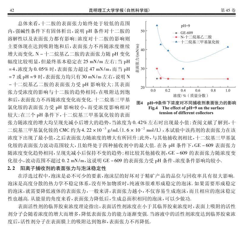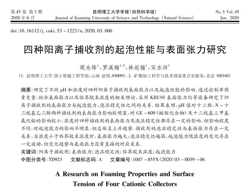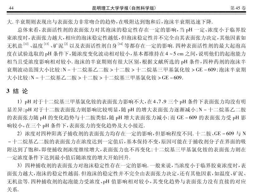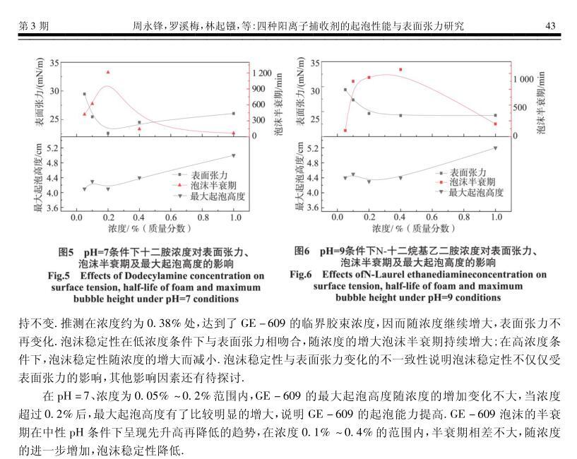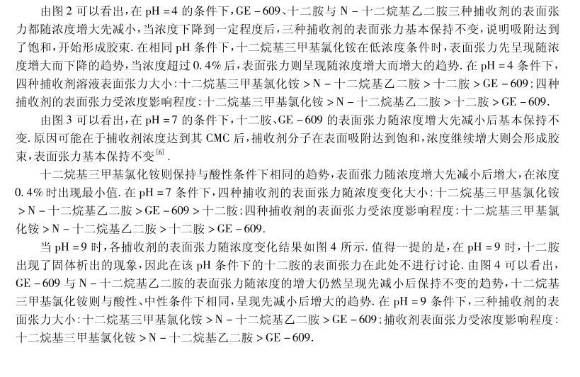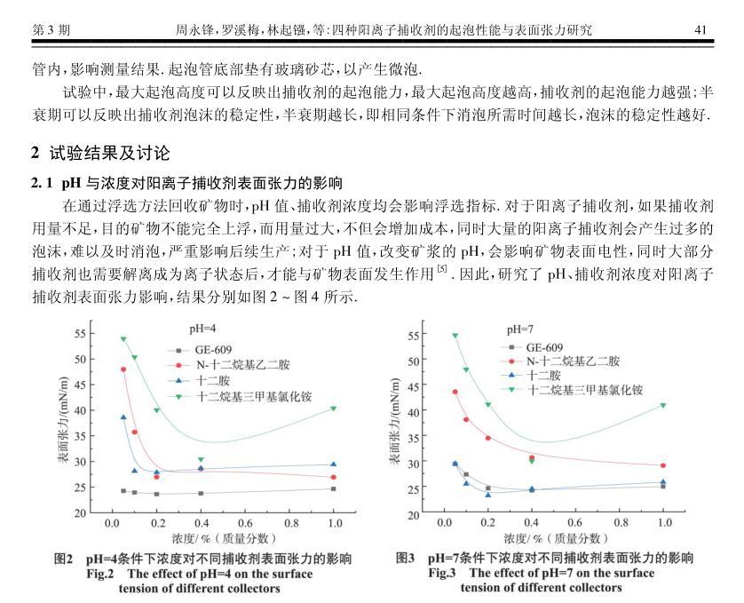 四种阳离子捕收剂的起泡性能与表面张力研究