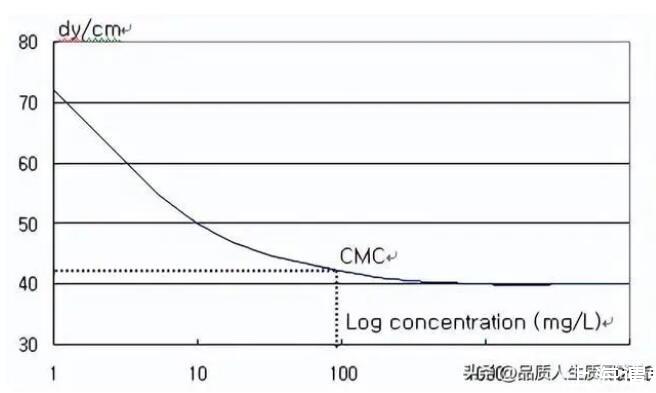 而電鍍液的潤濕性是可由液體的表面張力來做控制及分析,由表面張力的理論得知,若電鍍液的表面張力愈小,表示電鍍液的內聚力愈小、愈容易滲入細小的縫隙裡面、也愈容易於被鍍物表面潤濕讓金屬離子鍍上去。因此為了使電鍍液的表面張力降低或是增加電鍍後的品質,通常於電鍍液中會加入有機添加劑(光澤劑,結構改良劑,潤濕劑..等),其中潤濕劑即是在使鍍液表面張力降低的作用。然而當這類界面活性劑添加超過CMC點後,表面張力即不再改變(如下圖)。此時過量的添加不但沒達到效果反而增加了生產成本。因此CMC點便可作為電鍍液的監控標準值,來決定何時添加及添加的量。