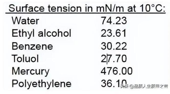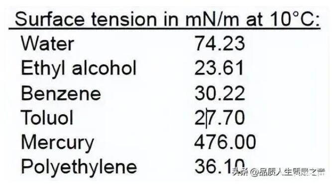 比如下面表格在10摄氏度时不同液体的表面张力差异很大