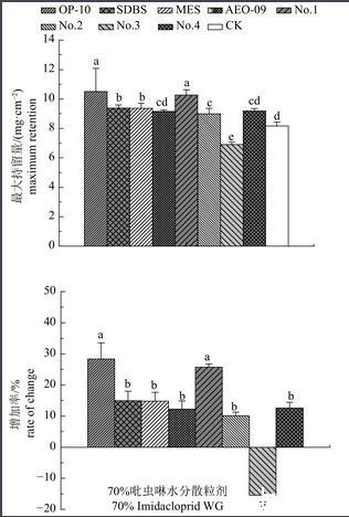 2.6助剂对药液在小麦叶片上最大持留量的影响