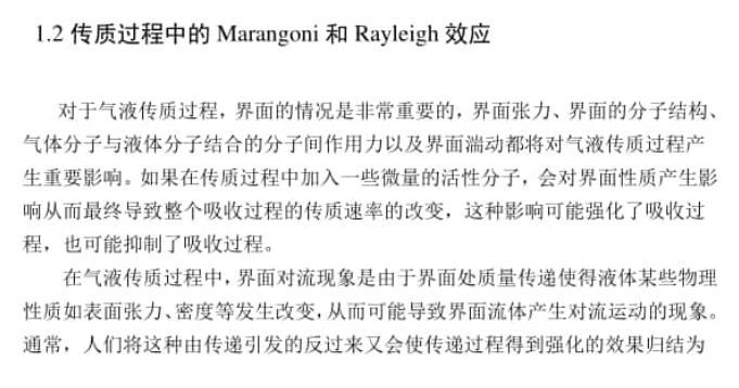 【摘要】:气液传质在化工过程中普遍存在,研究气液传质强化具有非常重要的意义。在气液传质过程中,液体表面张力是控制界面传质的重要参数,表面张力的变化会导致界面不稳定,在一些条件下会引发近界面液体的对流现象,即Marangoni对流。界面对流的产生将对气液传质过程造成显著影响。本文通过添加低表面张力物质,研究了低表面张力物质对气液传质过程的影响,以期寻求强化气液传质的有效手段。