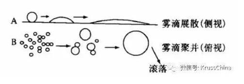 图4.农药液滴在植物叶片上的润湿铺展与聚并