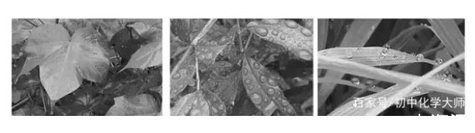 图1.水在三种不同植物叶片表面的形态特征