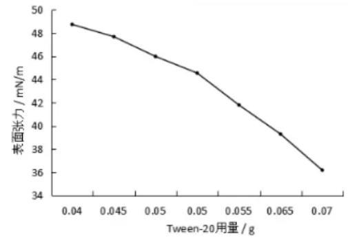 图2不同Tween-20用量下合成血液的表面张力变化