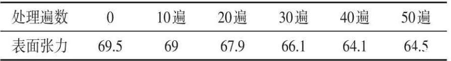 表2磁场强度为1.2 T时磁化水表面张力随遍数的变化值mN·m-1