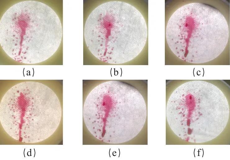 图3口罩内表面的合成血液穿透试验情况