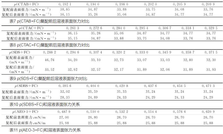 氟碳-碳氢表面活性剂复配体系表面张力变化规律与影响因素