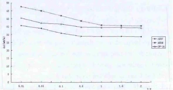 对AEO7和AEO9、OP-10在相同质量分数浓度下(0.1%)测量动态表面张力dst,分析非离子表面活性剂的分子结构对动态表面张力的影响;