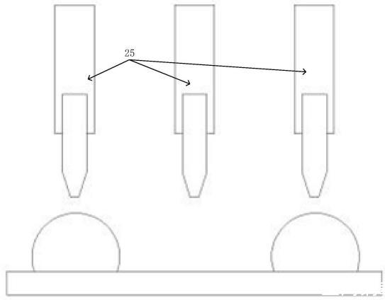 步骤S3:通过印刷机构将掺入碳粉并通入正电荷的UV油墨铺满在纸张上,由于纸张上已覆盖有固化的UV涂层,因此UV油墨在纸张上仍可自由移动,此时通过计算机处理印刷图案,进而控制印刷机构向指定金属探针输送负电荷,其余金属探针输送正电荷,当金属探针接触带正电荷UV油墨时,通过异电荷相互吸附的原理,UV油墨将向金属探针聚拢;其余探针通过同电荷相互排斥的原理,UV油墨将向金属探针反方向逃逸,待金属探针收回,UV油墨将因表面张力短时间内无法流平,再对纸张表层所有UV油墨进行最终固化;