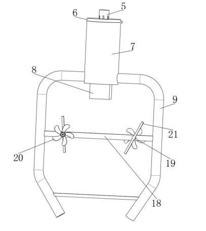 步骤三:在两根出液管带动加强杆转动的同时将带动涡轮叶片转动,使转动的涡轮叶片能够通过转轴带动搅拌杆转动,使搅拌杆对混料桶内的试剂溶液进行横向搅拌混合,提高混合效果。