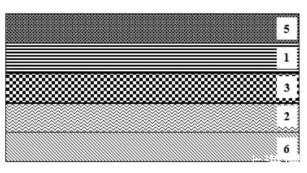 将本实施例的BOPP薄膜用于制备热复合基材,通过热复合功能层与共聚丙烯材料或/和聚乙烯材料复合,具体地,本实施例是与石头纸蜂窝板5热复合,复合后的结构请参阅图3,复合完成后,测试复合效果。复合方法包括以下步骤:首先在BOPP薄膜的可印刷表层上直接进行耐温油墨印刷,其中最后一道为耐温保护光油,形成油墨层6,然后轻度热压使薄膜与表面达到一定温度的石头纸蜂窝板直接热压复合,热复合工艺条件如下:温度为130℃,封合时间为2s,热压压力为8kg/cm2